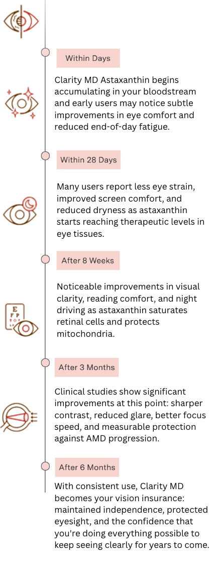 Clarity MD's clinical-strength astaxanthin supports sharp focus, comfortable vision, and long-term protection against age-related eye decline.